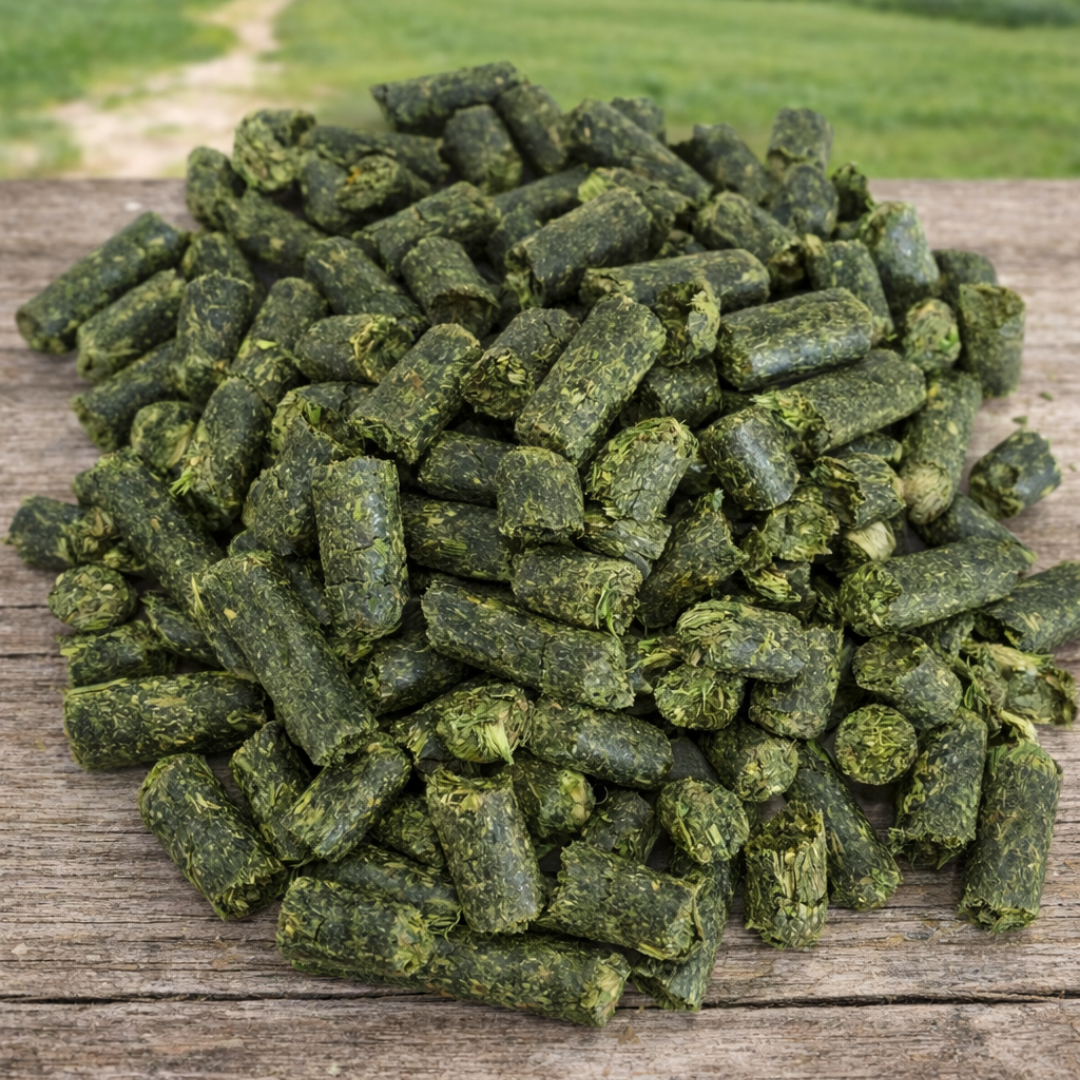 Die Forraje Equino Esparceta Pellets bestehen aus 100 % reiner, sonnengetrockneter Esparceta (Onobrychis viciifolia), schonend vermahlen und zu gleichmäßigen Pellets gepresst – ohne Getreide, ohne Melasse, ohne Zusatzstoffe.