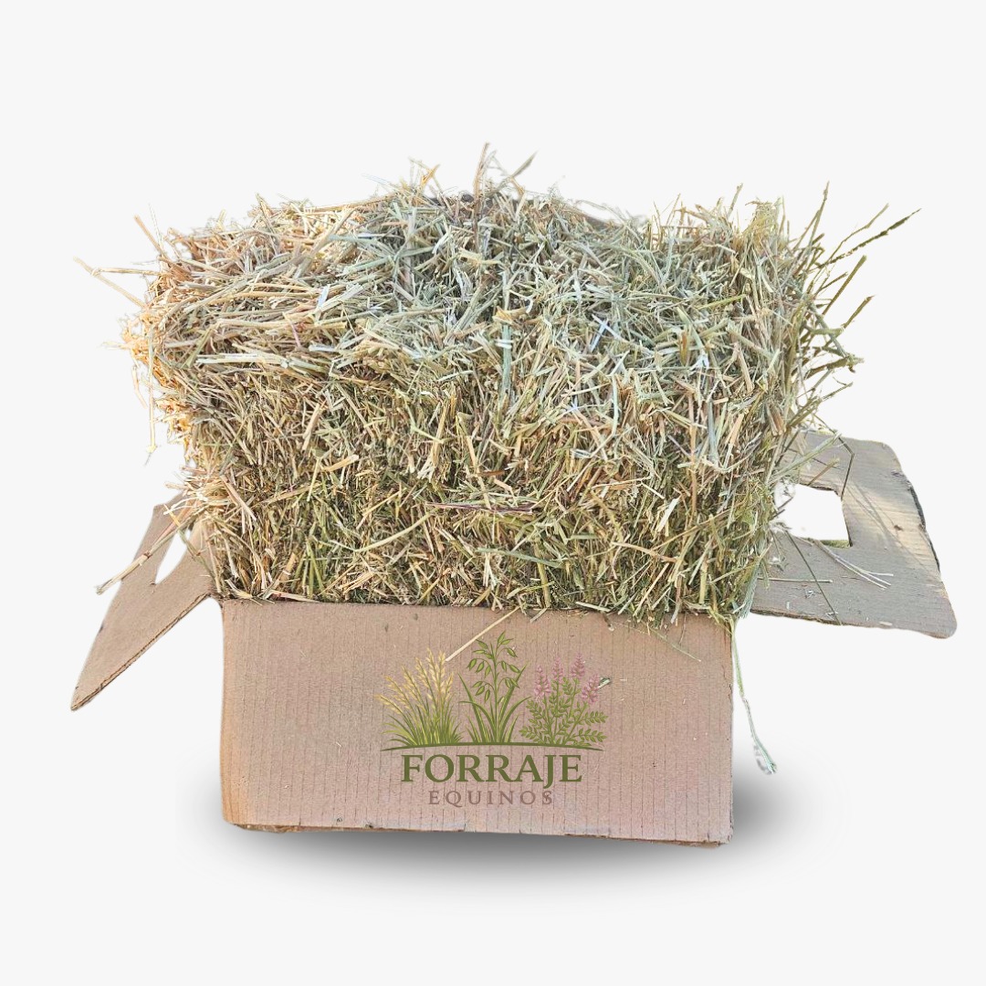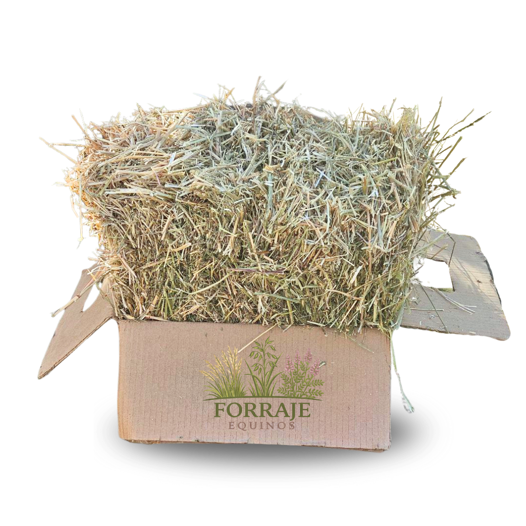 Die Forraje Equino Grünhafer Heubox enthält 100 % reinen, sonnengetrockneten Grünhafer (Avena sativa) in lockerer, strukturreicher Heuform – staubarm, aromatisch und ideal als tägliche Raufutterergänzung.